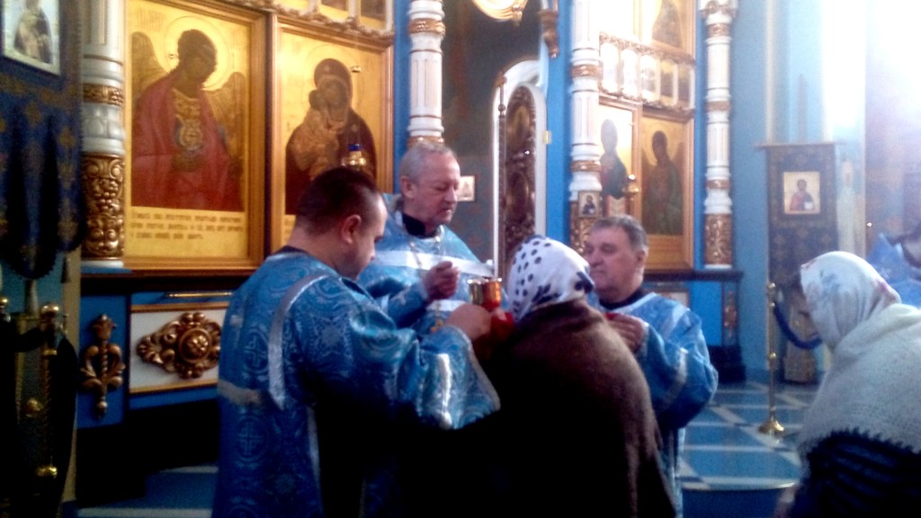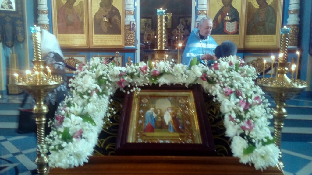 По окончании Божественной литургии, в честь праздника Сретения Господня, был отслужен молебен ко Пресвятой Богородице.