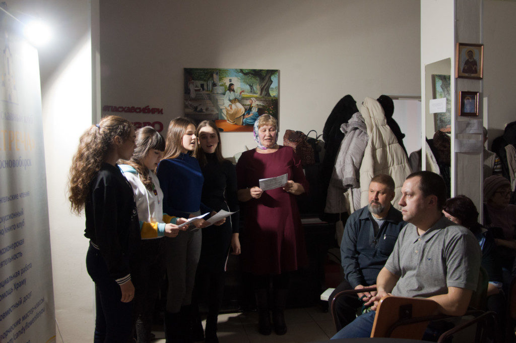 Игра прошла по всем правилам жанра: с интересными вопросами от ведущих и зрительного зала и, конечно же, с музыкальными паузами, во время которых хор Введенского храма представил несколько музыкальных произведений.