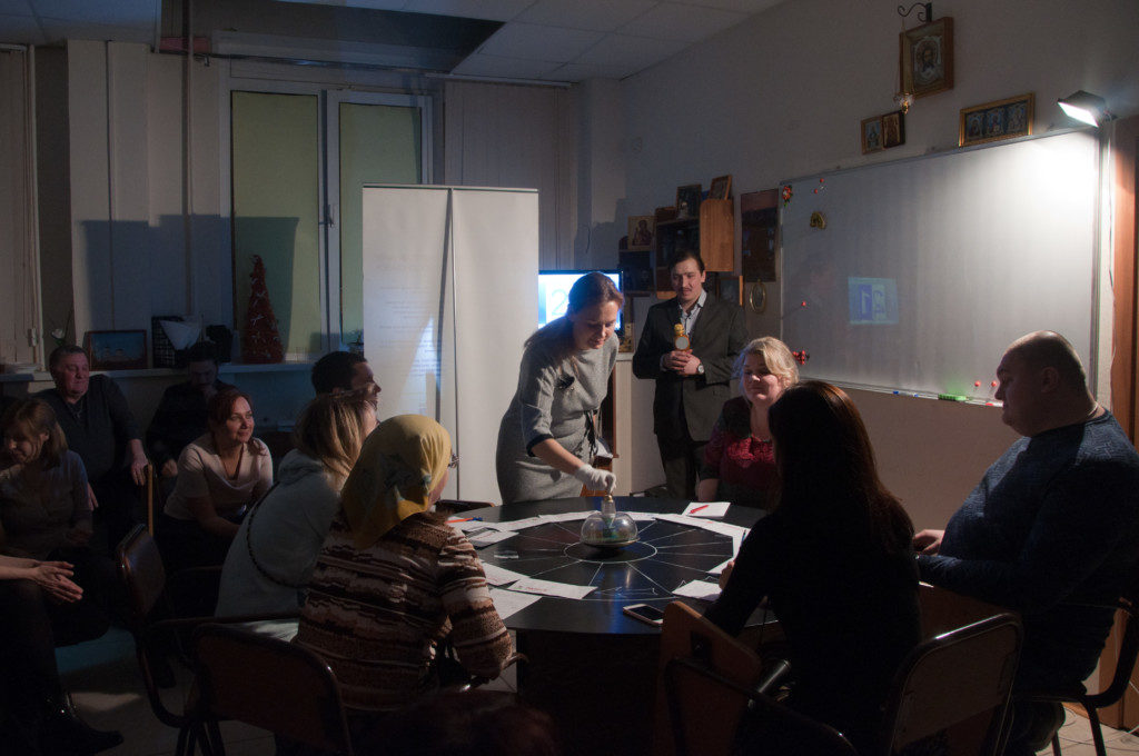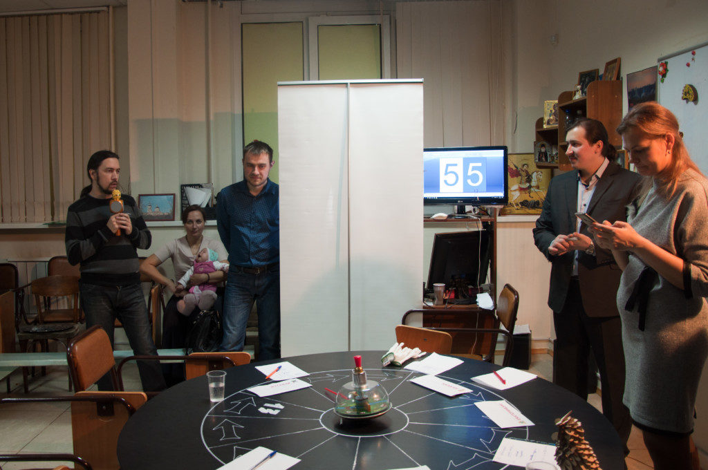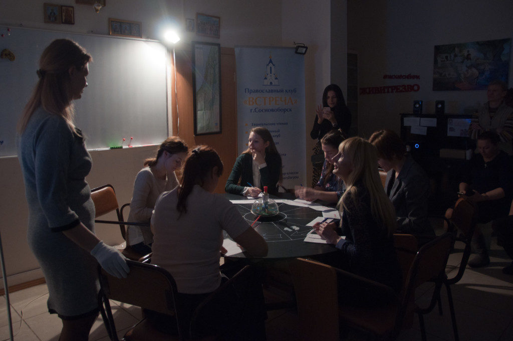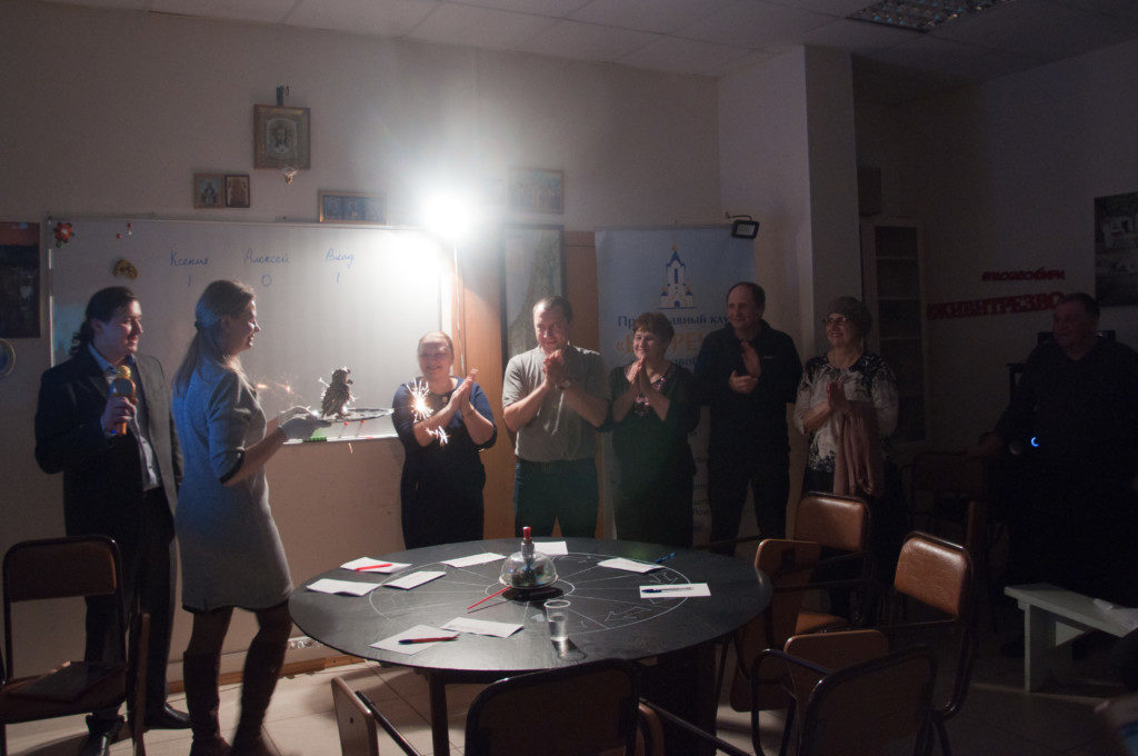 17 февраля в Православном клубе «Встреча» прошел второй цикл игр «Что? Где? Когда?». Более месяца организаторы тщательно готовились к этому событию и вот праздник наконец состоялся. В игре принимали участие три команды, составленные как из прихожан храма, так и гостей из города Железногорска, поселка Берёзовка, села Есаулово. Свыше 50 зрителей активно поддерживали «православных знатоков».
