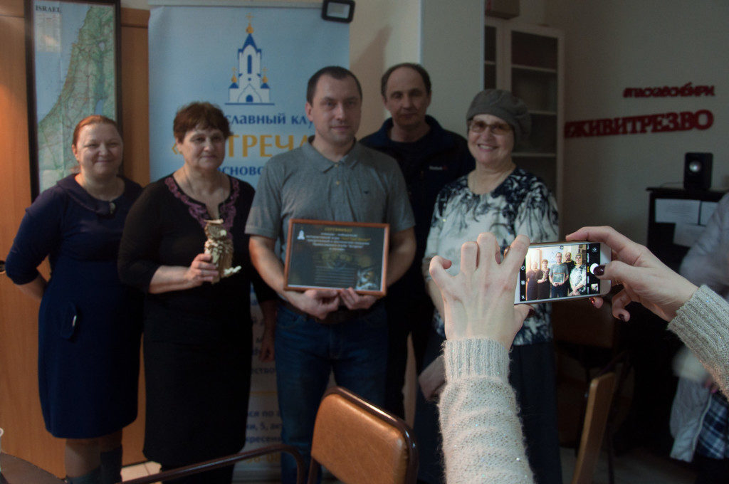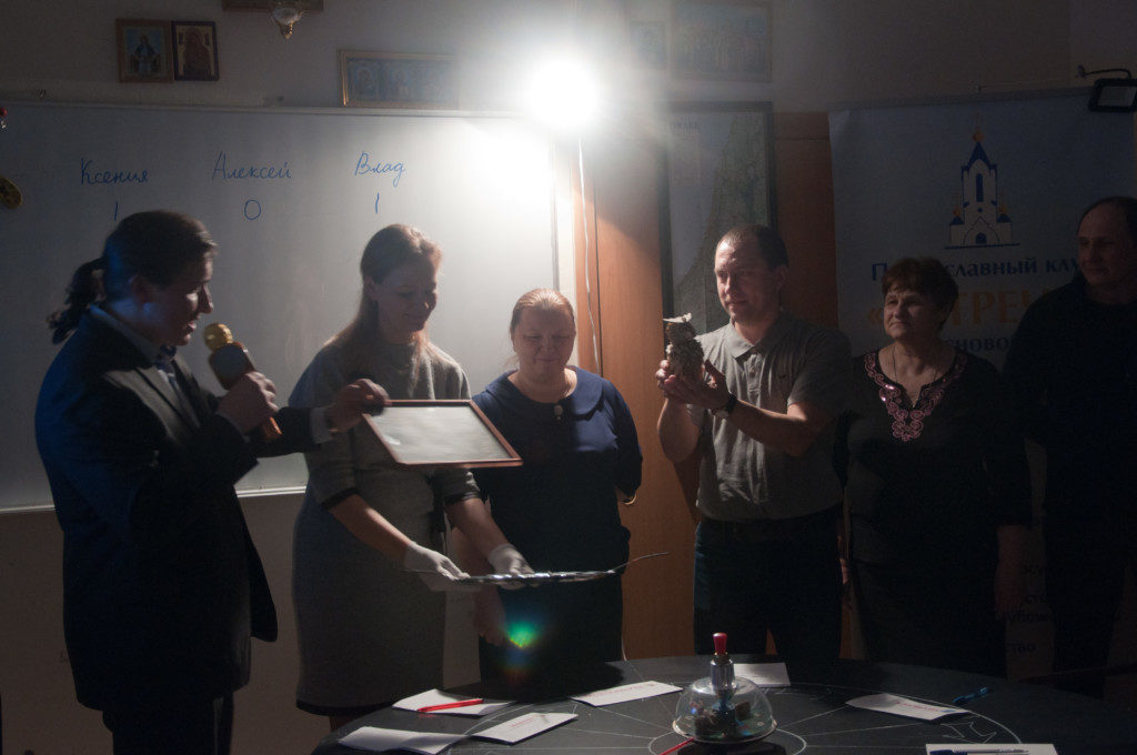 По традиции клуба знатоков в конце программы лучшей команде была вручена деревянная сова, специально изготовленная для этого случая прихожанином нашего храма Дмитрием Алексейцевым.
