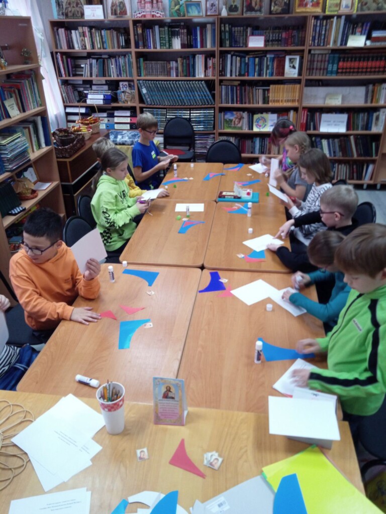 Воспитанники детской воскресной школы при Введенском храме города Сосновоборска на творческих занятиях приготовили открытки для солдат.