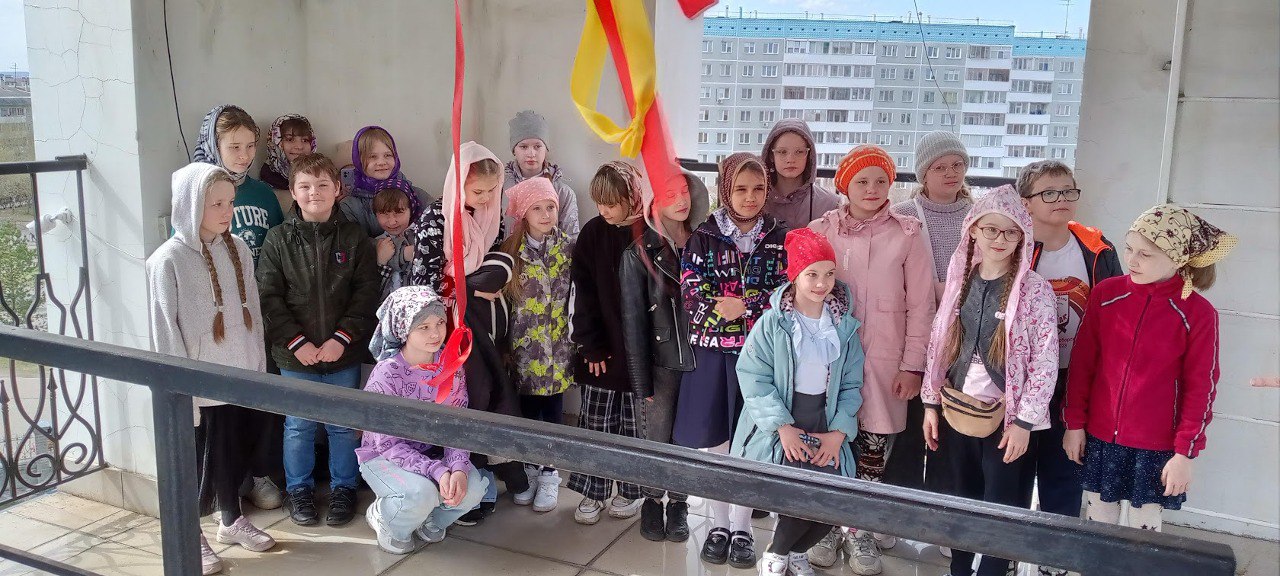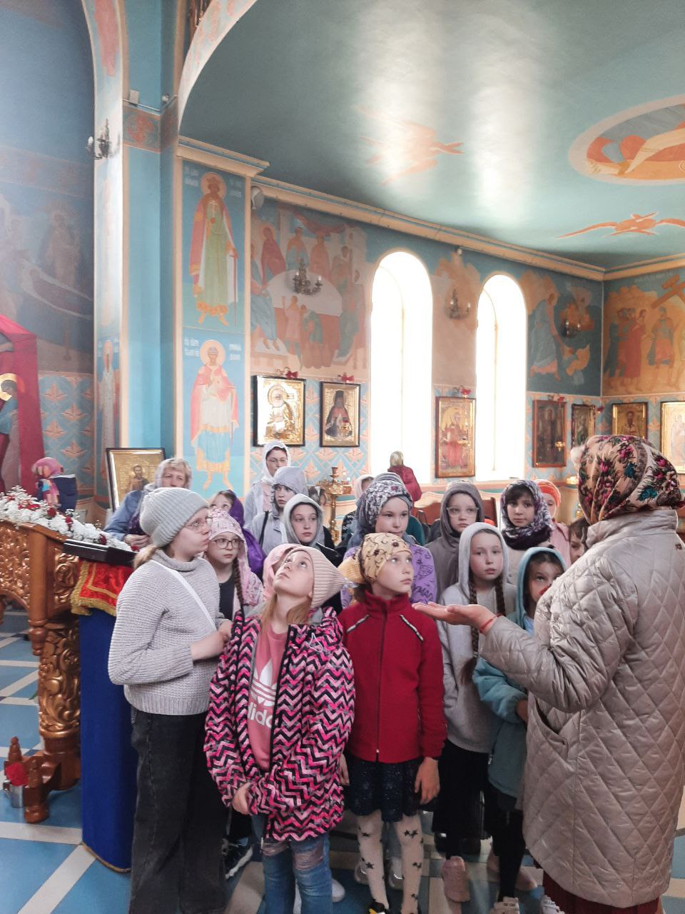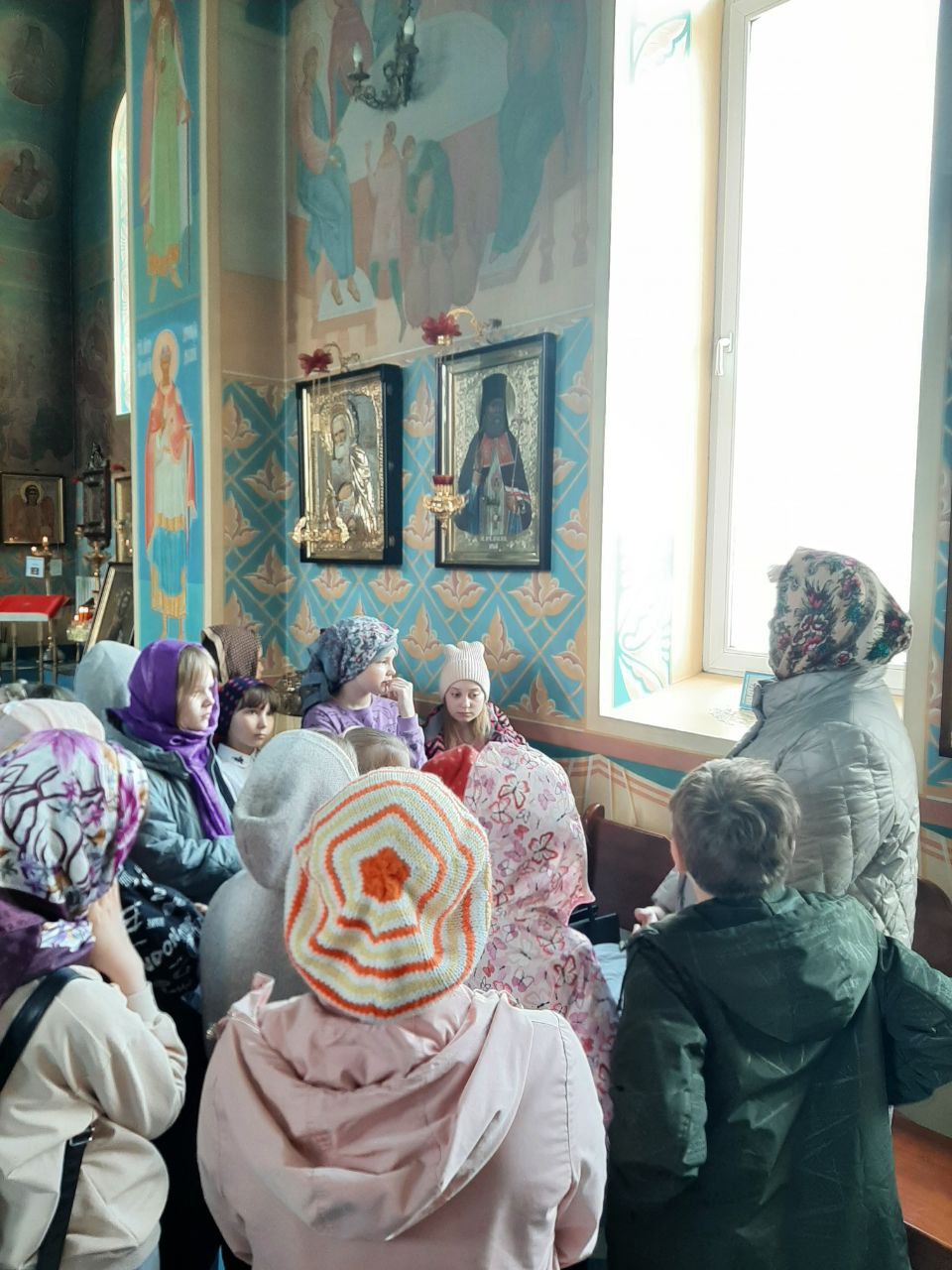 6 мая в день памяти вмч. Георгия Победоносца, а также накануне 79-ой годовщины Великой Победы, ребята смогли узнали историю георгиевской ленты. Рассматривая мозаичную икону над северным входом в Введенский храм, они вспомнили, что видели это изображение на гербе России, на русских монетах. С большим интересом дети послушали историю жизни святителя Луки (Войно -Ясинецкого), который в 1941 году трудился в Красноярске, главным хирургом военного госпиталя № 1515 и проводил сложнейшие операции тяжелораненым бойцам.