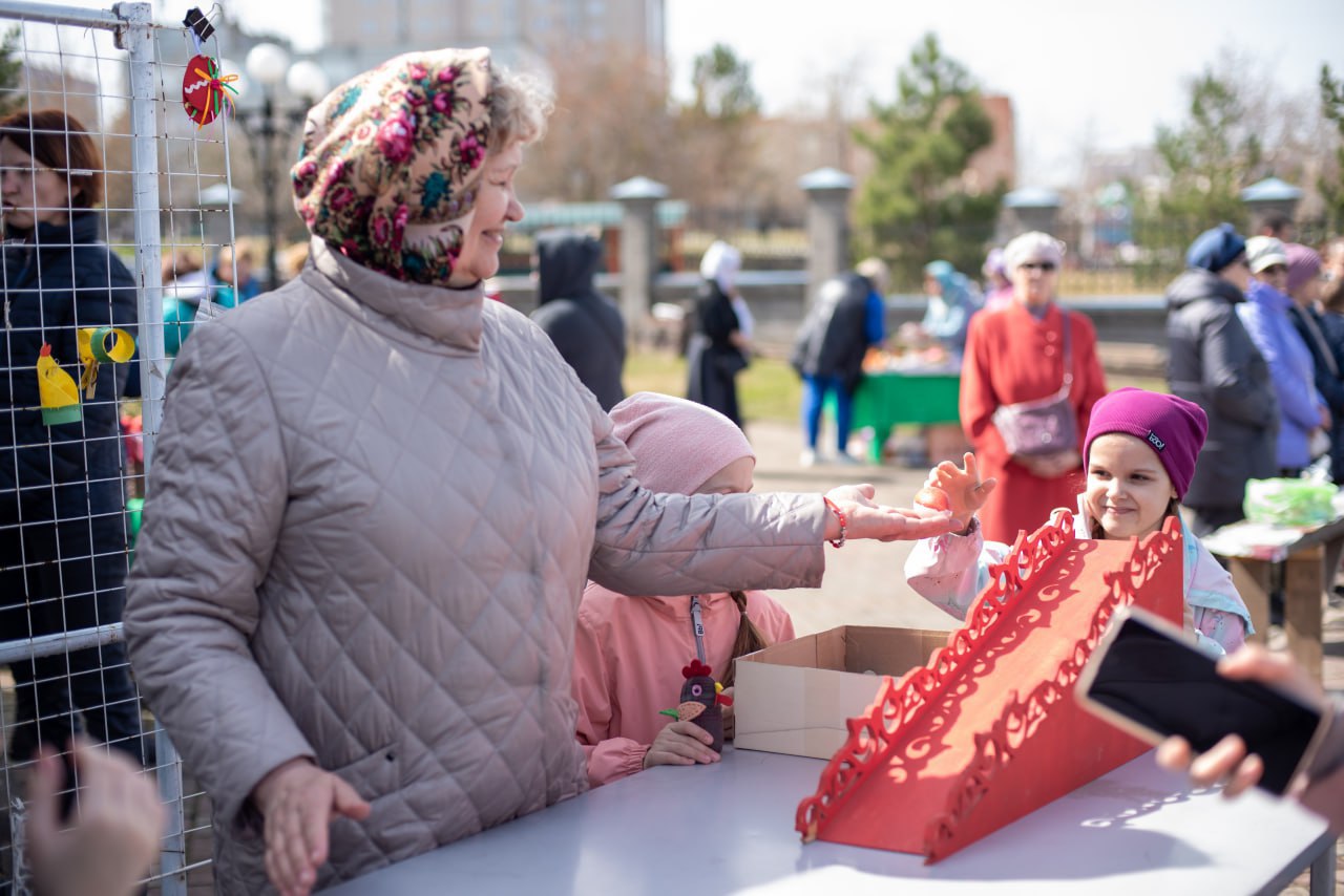 В финале экскурсии и взрослые, и дети играли в старинную русскую игру — Катание яиц с горки, выигрывая сладкие призы или сувениры ручной работы.