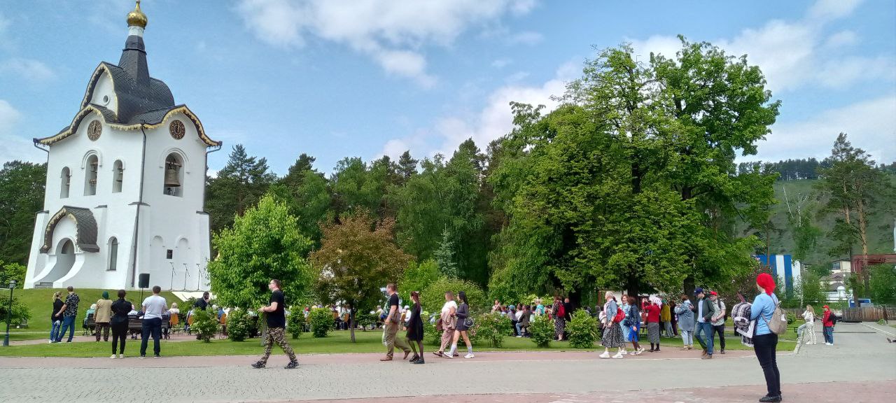 На этот раз путешествие в старинный монастырь было приурочено к фестивалю звонарей Красноярской митрополии «Колокола Сибири» и празднику цветов «Сибирский первоцвет».